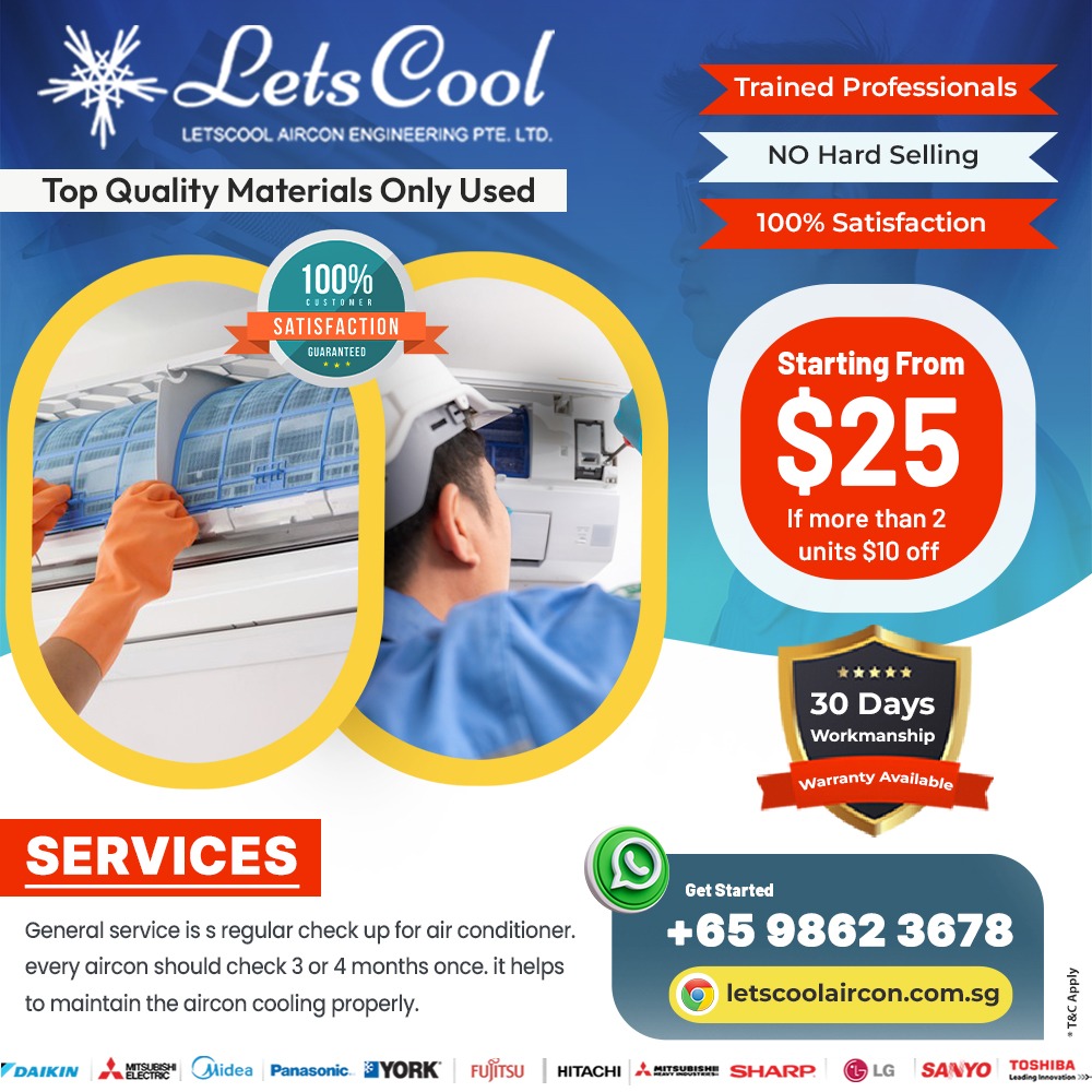 Read more · 5 min readAircon Chemical Wash vs General servicing Vs Chemical OverhaulRegular air conditioning maintenance is essential for every home and office in Singapore. With our hot and humid climate, aircons work overtime, making proper care even more important. Many customers often ask: What is the difference between aircon general servicing, aircon chemical wash, and aircon chemical overhaul? In this guide, LetsCool Aircon and Services Singapore — one of the best aircon servicing Singapore companies — explains each method so you can choose the right service for issues like aircon not cold, aircon water leakaging, aircon light blinking, or recurring aircon error code